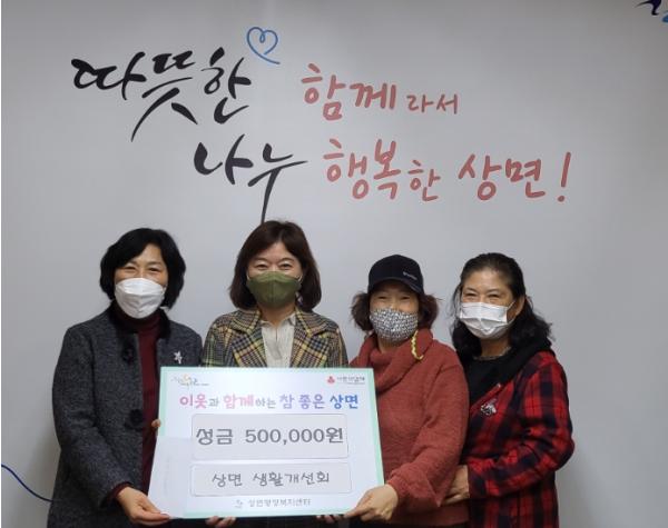위선경 상면장은 “언제나 지역 발전을 위해 애써주시고, 이렇게 추운계절 어려운 이웃을 위해 따뜻한 사랑과 나눔을 실천해주신 상면생활개선회 회장님과 회원 분들께 감사드린다”며, “기탁 해 주신 성금은 관내 도움이 필요한 가정에 따뜻한 마음을 담아 잘 전달해 드리겠다”고 전했다.