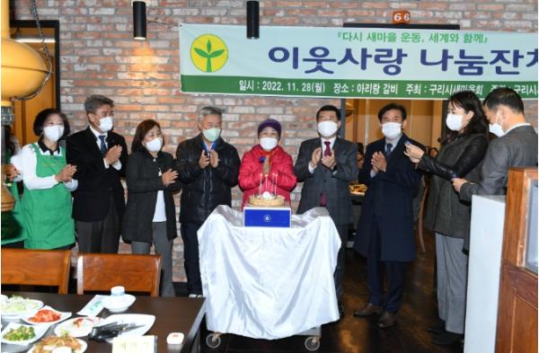 [한국뉴스타임=편집국] 구리시 (사)새마을회(회장 안정섭)는 지난 28일 아리랑갈비에서 새마을부녀회(회장 김광순) 주관으로 각 동 회원 30여명이 모인 가운데‘이웃사랑 나눔잔치’ 행사를 진행했다.