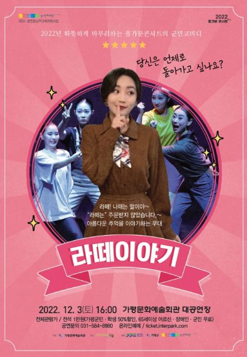 <라떼이야기>는 2022년 한해를 따뜻하게 마무리하는 군민코미디, 아름다운 추억을 이야기하는 무대를 선사한다.