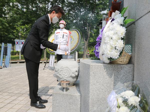 [KNT한국뉴스타임] 김종천 과천시장은 6일 ‘제65회 현충일’을 맞아 중앙공원 현충탑을 찾아 참배했다.