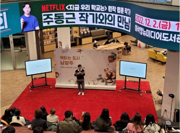 시는 독서 진흥과 지식 정보 확산, 도서관 문화 사업의 일환으로 『책 읽는 도시 남양주 작가 초청 강연회』를 마련했으며, 첫 번째 강연으로 넷플릭스 화제의 드라마였던 '지금 우리 학교는'의 원작 웹툰을 그린 주동근 작가를 초청해 데뷔 과정 및 스토리텔링, 작품의 영상화 과정 등 생생한 작업 이야기를 들었다.