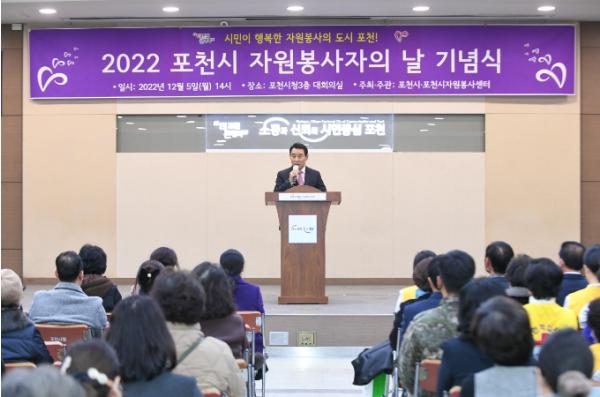 (사)포천시종합자원봉사센터는 지난 5일 시청 3층 대회의실에서 올해 자원봉사 현장에서 힘쓴 자원봉사자의 노고를 격려하기 위해 2022 포천시 자원봉사자의 날 기념식을 개최했다.