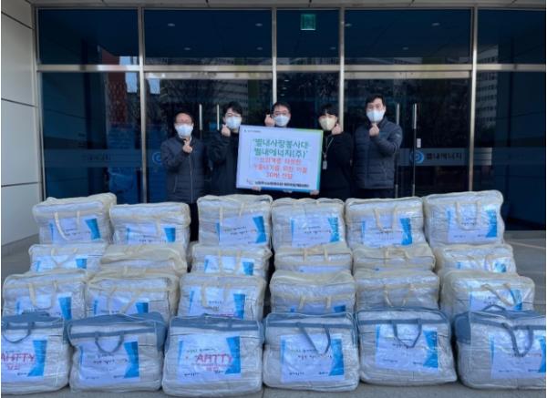 [한국뉴스타임=편집국] 남양주시 별내동 소재의 별내에너지㈜ 소속 봉사단체 별내사랑봉사대는 2일 취약계층의 따뜻한 겨울나기를 위해 165만 원 상당의 겨울 이불 30채를 남양주시사회복지관 북부희망케어센터에 전달했다.