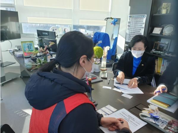 [한국뉴스타임=편집국] 경기도의회 여성가족평생교육위원회 정윤경 의원(더불어민주당, 군포1)은 5일 경기도의회사무실에서, 전국돌봄서비스노동조합 한지희 지부장과 함께 ‘경기도 아동돌봄 및 아이돌봄 관련 종사자의 처우개선’에 대해 논의하는 자리를 마련했다.