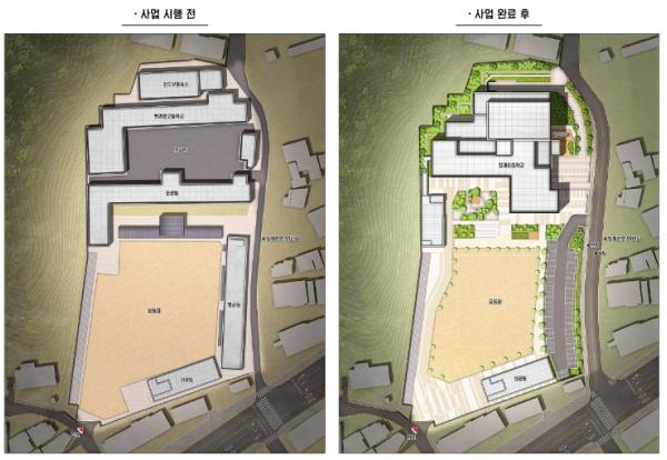 그린스마트 미래학교 사업은 약223억원을 투입하여 기존 노후한 건축물을 철거하고 도서실, 체육관, 식당, 다목적실 등 지역주민과 함께 할 수 있는 개방형 시설을 갖춘 지상5층 연면적 8,673㎡ 규모의 교사동을 신축하고, 외부공간은 다양한 수목들과 함께 야외학습과 공연, 휴식, 쉼과 놀이 등이 가능한 생태공간으로 조성하여 학생뿐만 아니라 주민들과 함께 공유할 수 있는 친환경 생태공간을 조성하는 사업이다.