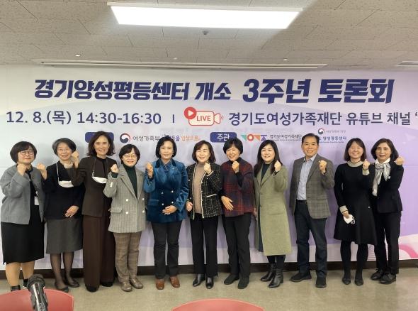 [한국뉴스타임=편집국] 경기도의회 여성가족평생교육위원회 정윤경 의원(더불어민주당, 군포1)은 12월 8일 경기도여성가족재단에서 개최한 『경기양성평등센터 3주년 기념 토론회』에 참석해 경기도 성평등문화 조성을 위한 경기양성평등센터의 역할에 대해 토론했다.