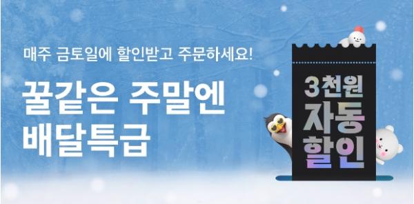 ‘주말엔 배달특급’은 배달특급의 대표적인 소비자 정기 이벤트로 배달특급을 통한 2만 원 이상 주문 시 사용할 수 있는 3천 원 할인쿠폰이 제공된다.