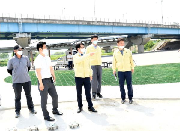 [KNT한국뉴스타임] 최종환 파주시장은 8일 공릉천 물놀이장 조성공사 현장을 방문해 물놀이장 추진현황과 전반적인 시설점검을 실시했다