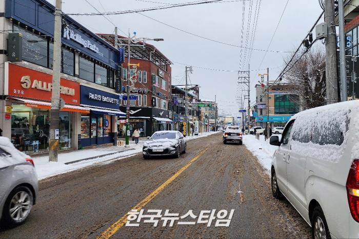이로 인해 주요 도로 및 간선도로의 차량들은 거북이 운행을 하고 있으며, 주요시가지 상가들은 인도 눈 제설에 여념이 없다.