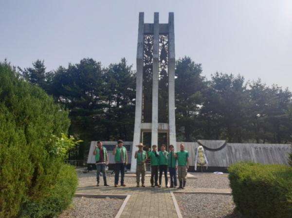 회원들은 농번기 바쁜 일정에도 불구하고 이른 아침부터 예초기 10여대를 이용해 타일랜드 군 참전기념비 주변을 정비하고 주변에 버려져 있는 쓰레기를 수거하는 등 구슬땀을 흘렸다.
