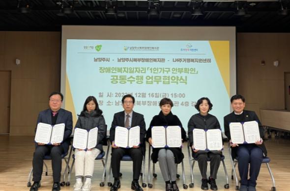 [한국뉴스타임=편집국] 남양주시는 지난 16일 관내 LH 주거행복지원센터 4개소(가운1단지, 가운2단지, 진접16단지, 장현 행복주택 2단지), 남양주시북부장애인복지관과 함께 ‘1인가구 안부확인’ 장애인일자리사업 업무협약을 체결했다고 19일 밝혔다.