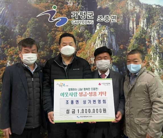 [한국뉴스타임=편집국] 지난 16일 조종면 상가번영회은 조종면행정복지센터에 방문하여 이웃돕기 성금 100만원을 기탁했다.