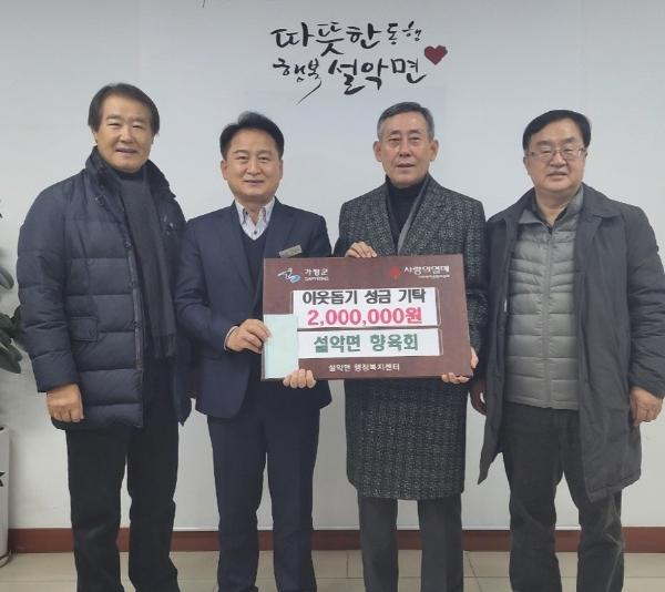 [한국뉴스타임=편집국] 설악면 향육회는 지난 12월 20일 설악면 행정복지센터를 방문하여 이웃사랑 성금 200만원을 기탁했다.