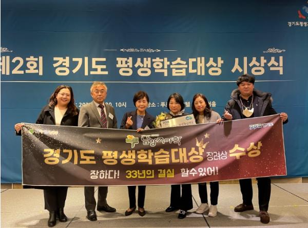 남양주야학은 1989년 설립된 이래로 33여 년간 지역 인적자원의 자원봉사활동을 통해 문해교육과 학력보완교육을 운영하면서 지역사회의 작지만 큰 학교로서 사회통합과 평생학습 문화 확산에 기여한 점을 높이 평가받았다.