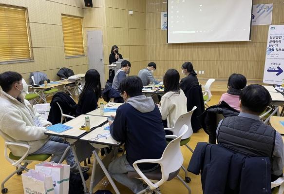 워크숍에는 도내 시·군 청년공간 운영인력으로 활동하는 센터장, 매니저 등이 20여 명이 참여했다.