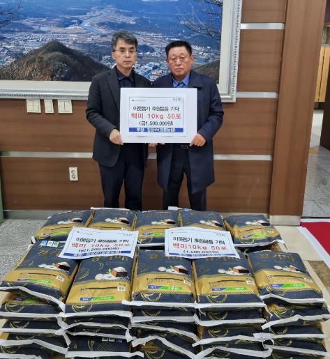 안문종 영중면장은 “연말을 맞아 나눔을 실천해주신 김상수 이사님께 깊은 감사의 말씀을 드린다. 기탁하신 쌀은 겨울철 소외된 이웃들이 없도록 어려운 이웃에게 잘 전달하겠다.”고 말했다.