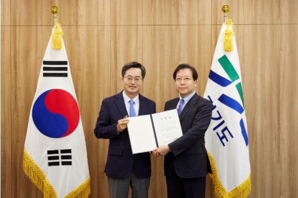 [한국뉴스타임=편집국] 김동연 경기도지사가 22일 도청 집무실에서 김세용 전 서울주택도시공사 사장을 신임 경기주택도시공사(GH) 사장에 임명했다.