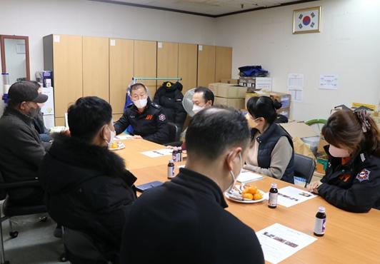 주요 내용으로는 ▲소화전, 비상소화장치 사용법 교육 ▲화재 사례를 통한 화재 경각심 고취 ▲소방차 통행로·전용구역 표시 요청 ▲보호천막 방화천막으로 교체 요청 ▲가스배관 안전점검 등이다.