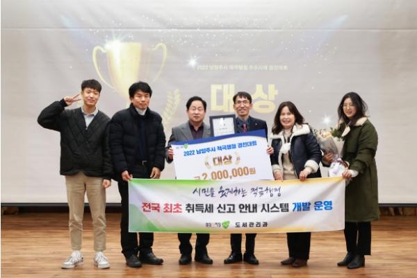 또한, 우수상은 철도교통과의 ‘긴급 차량 우선 신호 남양주 시민의 골든 타임을 사수하다’, 농생명정책과의 ‘GB 훼손지정비사업 국토부 승인 부지 내 처분 대상 농지 농지전용허가(협의) 처리’, 다산1동 복지지원과의 ‘기부 문화의 패러다임을 통한 지역 사회 ‘고독사’ 예방 구축’이 차지했으며, 장려상은 장애인복지과, 하수처리과, 풍양보건소 보건정책과, 진접읍 복지지원과가 수상했다.