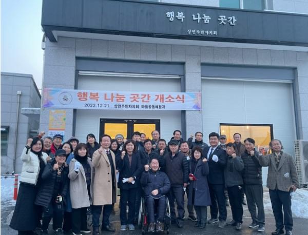 [한국뉴스타임=편집국] 상면 주민자치회 마을공동체사업 분과는 12월 21일 상면 행정복지센터에서 최정용 군의장 및 양재성 군의원, 기관단체장 등 30여 명이 참석한 가운데 행복나눔곳간 개소식을 개최했다.