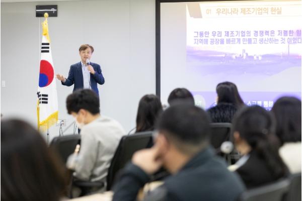 이에 송 센터장은 “우리가 연구하는 환경이라든가 기술개발을 하고 적용할 수 있는 생태계를 잘 만들어놓는 게 필요하다고 생각한다. 제조업에 들어가 있는 주요 솔루션 기업들은 생각보다 서울보다 경기도에 많다. 그런 솔루션 기업을 적극적으로 지원해주는 정책을 도에서 만든다면 직원은 따라오지 않을까 생각한다”고 답변했다.