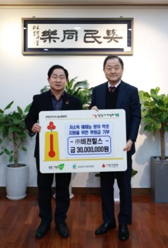 ㈜비전힐스 신용문 대표이사는 “경제적 어려움 등의 이유로 자신감을 잃어버리는 학생들을 보며 안타까운 마음이 들었다.”라며 “학생들이 이번 후원을 계기로 학업에 더욱 열중해 자신의 가능성을 최대한 발휘하길 바란다.”라고 밝혔다.