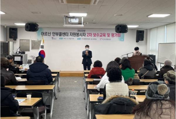 [한국뉴스타임=편집국] 사단법인 구리시자원봉사센터(이사장 백경현)는 23일 어르신 안부콜센터 자원봉사자 대상으로 2차 보수교육 및 평가회를 진행했다.