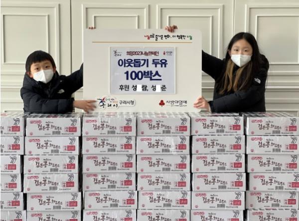 [한국뉴스타임=편집국] 구리시에서는 지난 16일 구리시에 꼬마 산타 성모양(11세), 성모군(10세) 남매가 찾아와 두유 100박스를 기부했다고 밝혔다.
