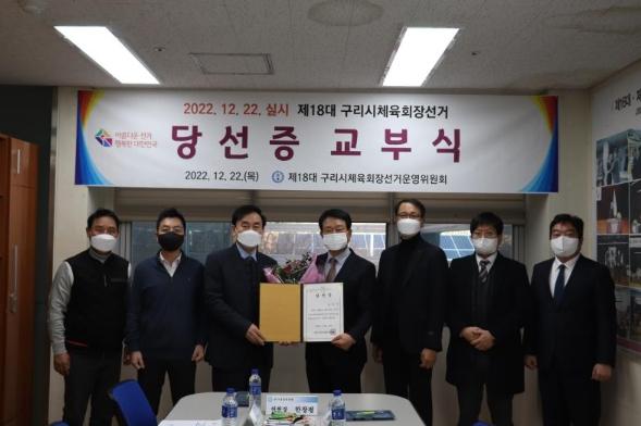 [한국뉴스타임=편집국] 지난 12월 22일 실시한 제18대 구리시체육회장선거에서 윤재근(윤서병원 행정원장) 후보자가 당선 결정되어 당선증을 교부 받았다.