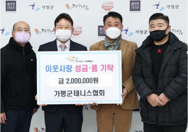 [한국뉴스타임=편집국] 지난 12월 23일, ‘가평군 테니스협회’에서는 관내 어려운 이웃을 위해 이웃돕기 성금 200만원을 군에 기탁하여 전달식을 가졌다.