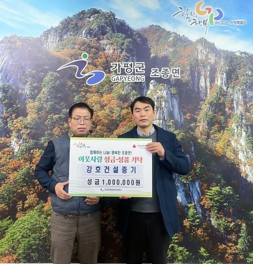 [한국뉴스타임=편집국] 지난 22일 강호건설중기 대표 양경석은 조종면행정복지센터에 방문하여 관내 취약계층을 위한 이웃돕기 성금 100만원을 기탁했다.