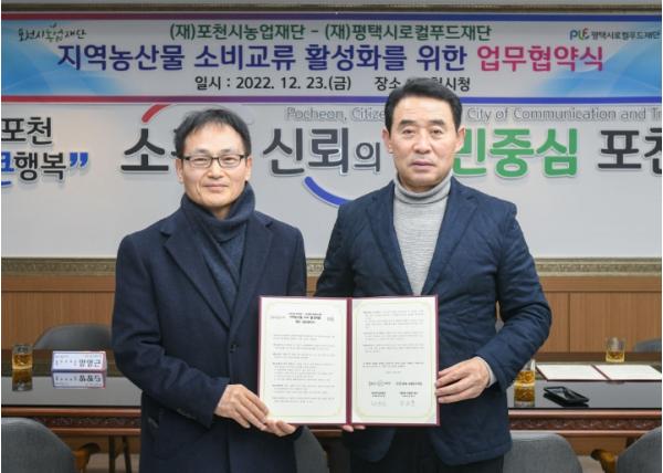 (재)포천시 농업재단은 지난 23일 (재)평택시 로컬푸트재단과 지역 농산물 교류 상생 조성을 위한 업무협약을 체결했다.