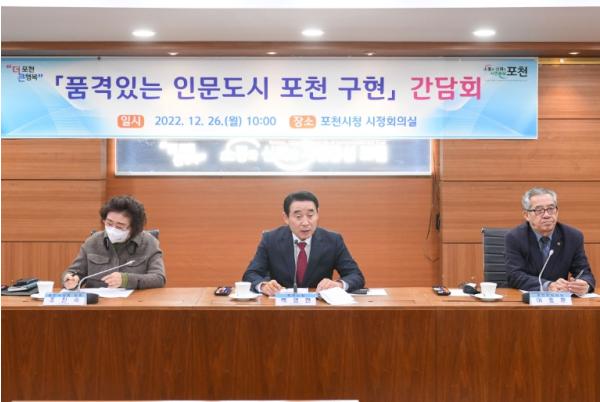 [한국뉴스타임=편집국] 백영현 포천시장은 지난 26일 시청 시정회의실에서 시정방침 4대 전략의 하나인 ‘품격있는 인문 도시’ 포천 구현을 위한 간담회를 개최했다.