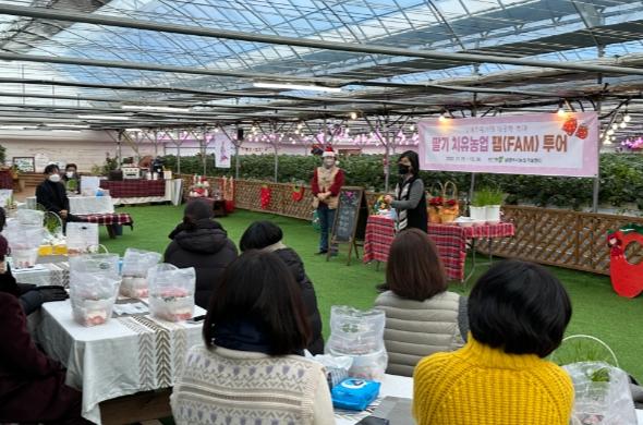 이번 팸투어는 농촌진흥청 국비사업인 ‘기술보급 블렌딩 협력모델 사업’을 통해 개발한 딸기 치유프로그램과 치유 음식을 농업 현장에서 적용해 볼 뿐만 아니라 치유농업 수요처와의 연계를 강화하기 위해 진행됐으며, 관내 8개 농가에서 시범적으로 운영됐다.