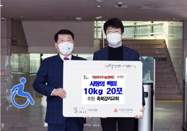 [한국뉴스타임=편집국] 구리시는 지난 26일 축복감리교회(목사 조문기)로부터 관내 취약계층을 위한 사랑의 백미(10kg) 20포를 전달받았다.
