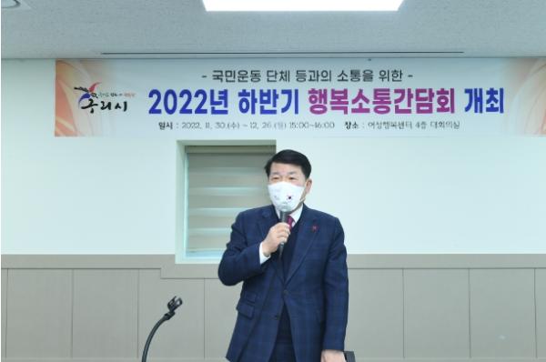 백경현 구리시장은 “행복소통간담회 참석을 위해 귀한 시간을 내어주신 회원 여러분께 감사하다.”라며, “양단체는 앞으로도 계속지역사회를 위해 꾸준히 노력해 주실 것으로 그 과정에서 발견한 불편 사항이나 시정 정책 수립에 필요한 의견이 있으시다면 아낌없이 전달해 주시길 바란다.”고 전했다.