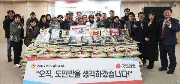 [한국뉴스타임=편집국] 경기도의회 국민의힘이 27일 연말을 맞아 소외계층과 온정을 나누기 위한 ‘경기미 나눔 행사’를 열고, 나눔문화 확산에 앞장섰다.