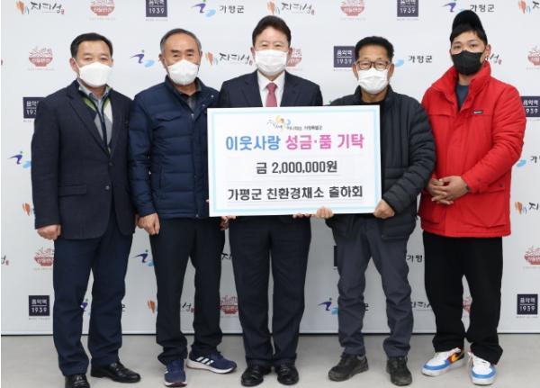 [한국뉴스타임=편집국] 연말연시 각계각층에서 이웃돕기 성금·품 기탁이 이어지고 있는 가운데, 지난 12월 27일 ‘가평군 친환경 채소 출하회’에서는 관내 어려운 이웃을 위해 써달라며 군에 이웃돕기 성금 200만원을 기탁하여 전달식을 가졌다.
