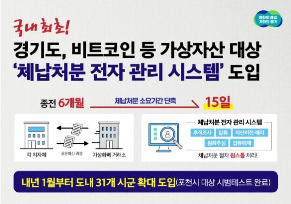 경기도는 지난 1월 개발을 착수해 9월 완성한 ‘조세 체납자 암호화폐 체납처분 전자 관리 방식’ 프로그램에 대해 최근 가상자산 거래소 코빗, 빗썸과 포천시의 협업으로 시범 운영을 마쳤으며 내년 1월부터 도 전역에서 활용할 예정이라고 27일 밝혔다.