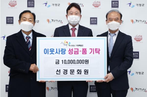 [한국뉴스타임=편집국] 12월 28일, 가평군 북면에 소재하고 있는 ‘선경문화원(원장 이주석)’에서는 우리군 소외이웃의 따뜻한 겨울나기를 위해 이웃돕기 성금 1천만 원을 군에 기탁하여 전달식을 가졌다.