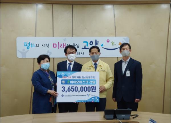 마스크는 고양시청소년상담복지센터, 청소년쉼터 2개소 등 관내 위기 청소년을 위해 전달될 예정이다.