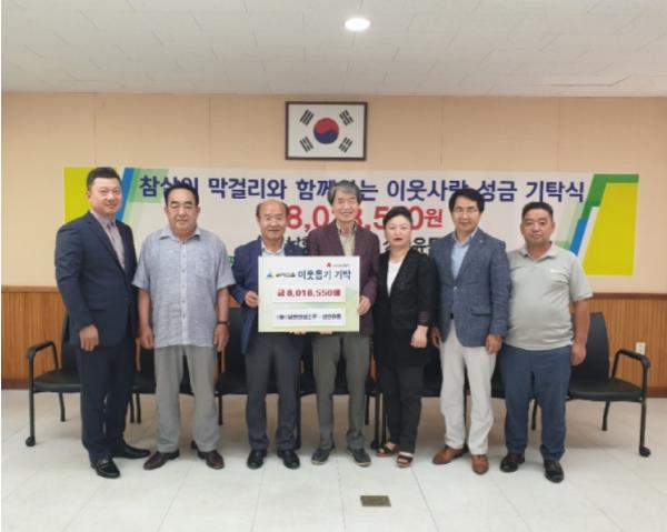 이날 기탁한 성금은 지난해 11월 관내 기관 및 단체, 기업들이 지역막걸리 소비확대 및 육성을 위한 ‘생활밀착 지역경제 챙기기 업무협약’으로 참살이 막걸리 750㎖ 한 병 판매 시 50원을 기부하기로 협약한 수익금이다.