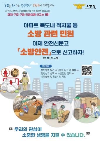‘소방안전’ 신고메뉴는 안전신문고 시스템에 신청되는 아파트 복도 내 적치물 등의 소방민원을 관할 소방서로 자동 배정해 이송단계를 축소하고, 소방민원 전용창구 부재에 따른 민원인의 불편함 해소를 위하여 마련됐다.