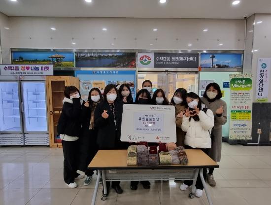 이날 후원받은 목도리는 학생들이 정성껏 뜨개질하여 직접 제작한 것으로, 수택3동 취약계층에 전달해 따뜻한 겨울을 보낼 수 있도록 지원할 예정이다.