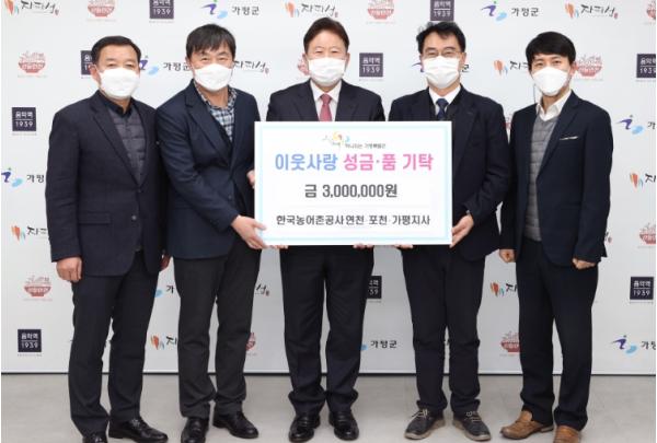 [한국뉴스타임=편집국] 1월 3일, 계묘년 새해를 맞아 ‘한국농어촌공사 연천·포천·가평지사’에서는 우리군 소외이웃을 위해 이웃돕기 성금 3백만 원을 군에 기탁하여 전달식을 가졌다.