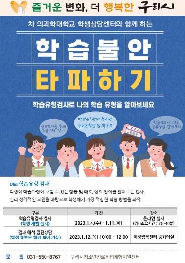 [한국뉴스타임=편집국] 구리시는 1월 4일부터 1월 11일까지 관내 중·고등학생을 대상으로 온라인 ‘ U&I 학습유형검사’를 실시한다.