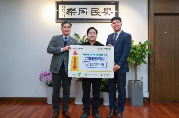 ㈜대한이앤씨 윤원진 대표이사는 “처음 회사를 설립할 때부터 기부를 생각하고 있었지만 지속되는 경기 불황에 쉽지 않았다. 지난해부터 추운 겨울을 주변 이웃들과 함께 잘 이겨 냈으면 하는 마음에 기부를 시작하게 됐다.”라며 “앞으로도 취약계층을 위해 지속적으로 나눔 활동에 동참하겠다.”라고 밝혔다.