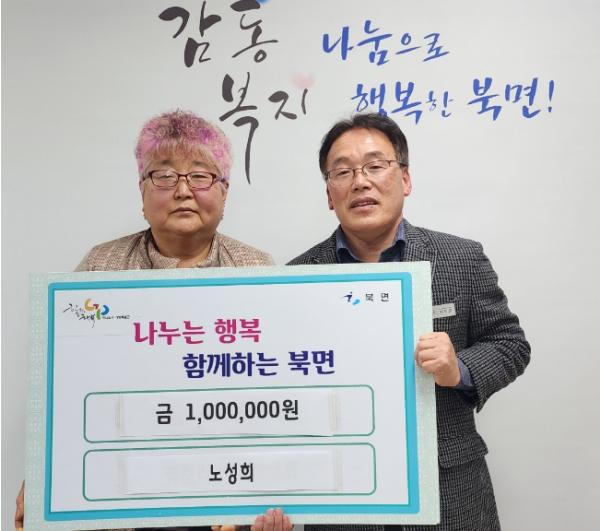 노성희 북면 지역사회보장협의체 민간위원장은 “북면에서 나고 자라지는 않았지만 고향이 되어버린 이곳의 어려운 이웃을 위하여 성금을 기탁한다. 아직은 젊고 여력이 있어 좋은 일을 할 수 있음에 감사한다”고 말했다.