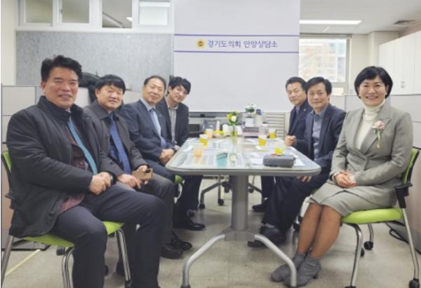 [한국뉴스타임=편집국] 경기도의회 문형근 의원(더민주, 안양3), 김성수 의원(더민주, 안양1), 이채명 의원(더민주, 안양6), 장민수 의원(더민주, 비례의원)은 9일 도의회 안양상담소에서 안양시 장영근 부시장, 이병준 기획경제실장과 함께 안양시 지역발전에 대한 정담회를 개최했다.