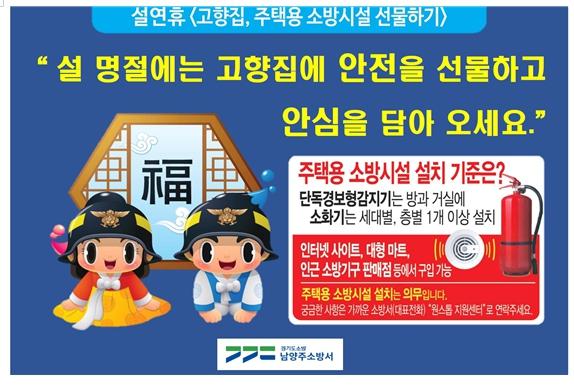 [한국뉴스타임=편집국] 남양주소방서는 다가오는 설 명절을 맞아 이번 달 24일까지 설 명절 ‘주택용 소방시설 선물하기’ 집중 홍보 활동을 펼친다고 밝혔다.